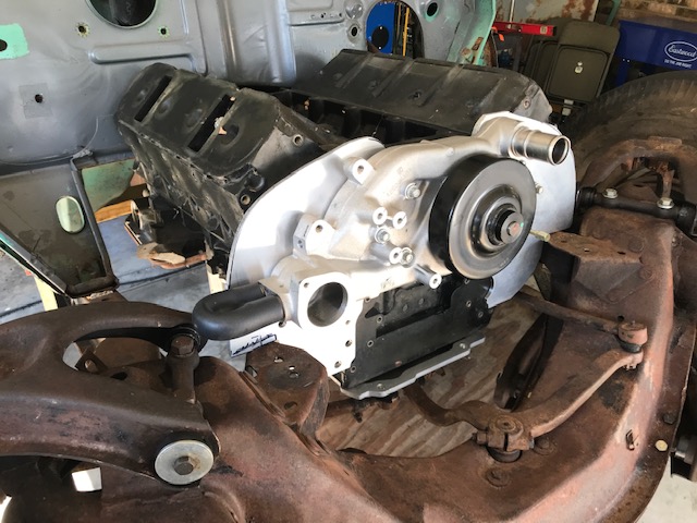 Larry WoodfinThe front motor plate sits on the original front engine brackets about 3" rearward. The first checking shows it will be around 1/2" lower in the front than what is mocked up now.