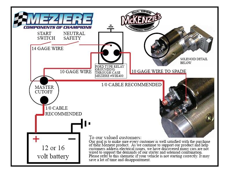 The latest trend is to use a high amp relay that connects to the battery cable post on the starter and the other to the solenoid to energize it.  The theory behind this is maximum amperage/voltage to the solenoid while cranking, only using the starter switch to activate the relay.  The battery cable goes from the master cutoff to the starter and is hot all the time when the disconnect switch is on.  It works, been used on diesels for years.  However, I run my battery cable from the battery to the master cutoff, then to a high amp relay (750 continuous, 2500 surge), then to the starter.  At the starter I run a 10ga jumper to the solenoid from the battery terminal on the starter.  The start button only activates my starter relay.  Also been doing this for YEARS.  The advantage to that is the main battery cable to the starter is only hot WHEN CRANKING, dead otherwise, which I feel is safer.  Despite more main cable connections, I have measured less than a .1v drop from the battery to the starter when cranking on that cable, which is almost nothing.  This is basically the same setup with a different relay than a ford relay.  I've had the ford relays go bad quickly using 16v though, which is why I want to a different relay.  Since then no failures. Mark Goulette Owner/Driver of the Livin' The Dream Racing dragster www.livinthedreamracing.com "Speed kills but it's better than going slow!" Authorized Amsoil Retailer | |||